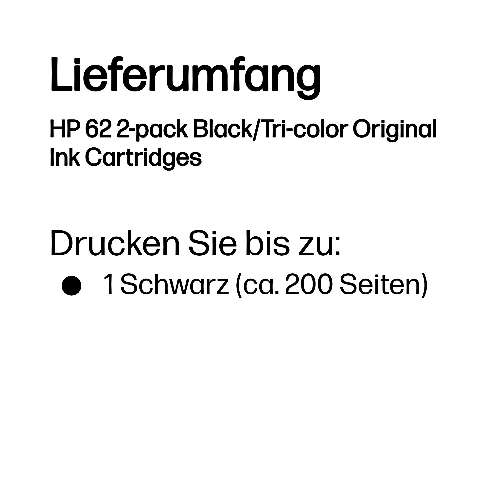 HP 62 2er-Pack Schwarz/Cyan/Magenta/Gelb Original Druckerpatronen