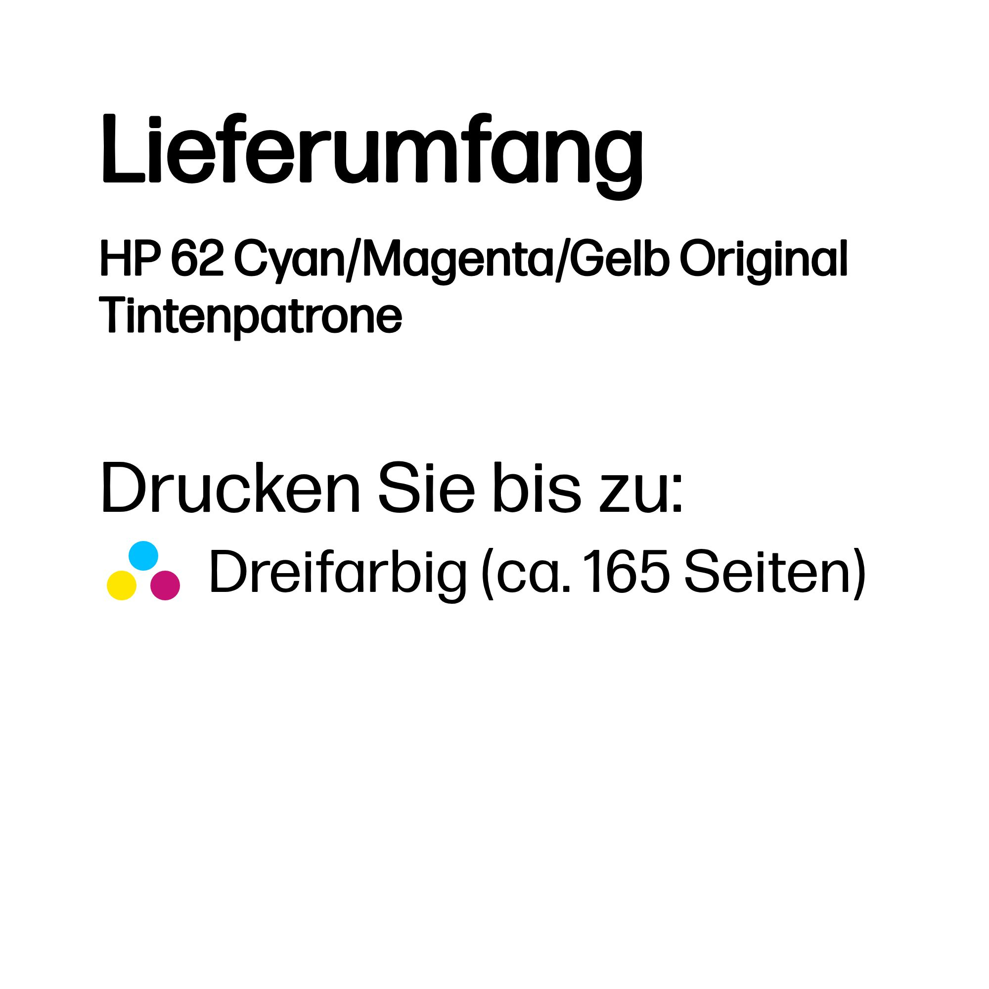 HP 62 Cyan/Magenta/Gelb Original Tintenpatrone
