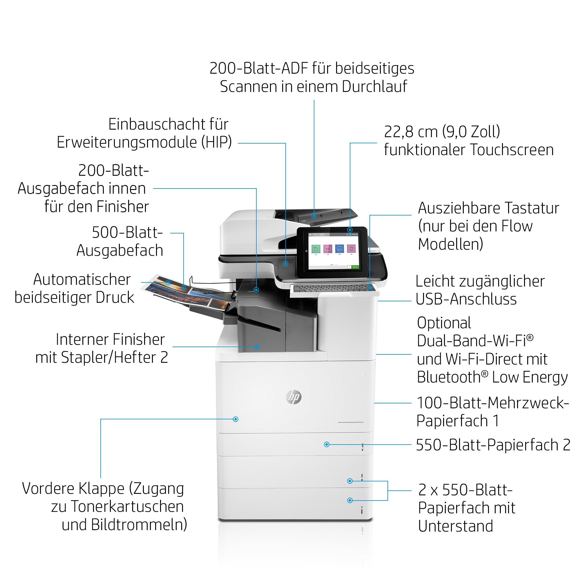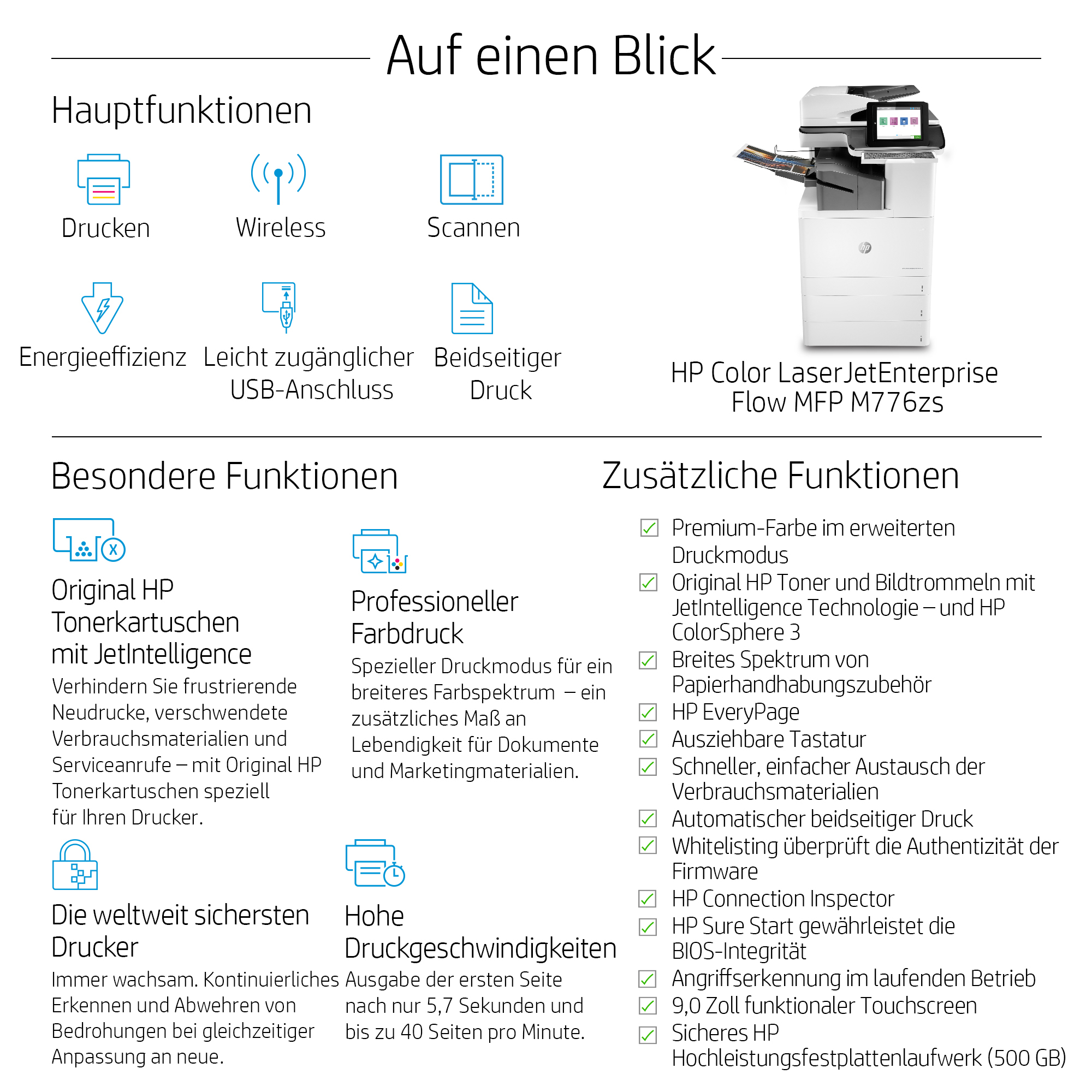 HP Color LaserJet Enterprise Flow LaserJet Enterprise Flow M776zs Wireless Multifunction Farbe Drucker, Kopierer, Scanner; Duplex