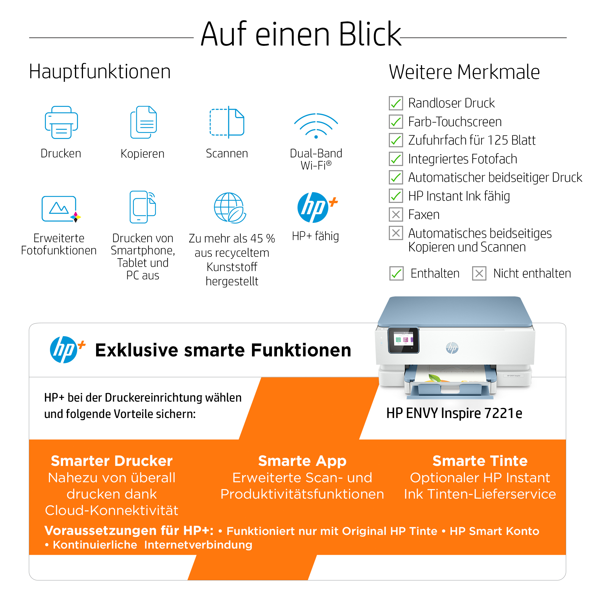 Dies ist ein HP+ fähiger Drucker. Wählen Sie bei der Produkteinrichtung HP+, um von den Vorteilen zu profitieren. HP+ erfordert ein HP Konto, eine unterbrechungsfreie Internetverbindung und die ausschließliche Verwendung von Original HP Druckerpatronen während der gesamten Lebensdauer des Druckers. Mehr Information unter: http://www.hp.com/plus