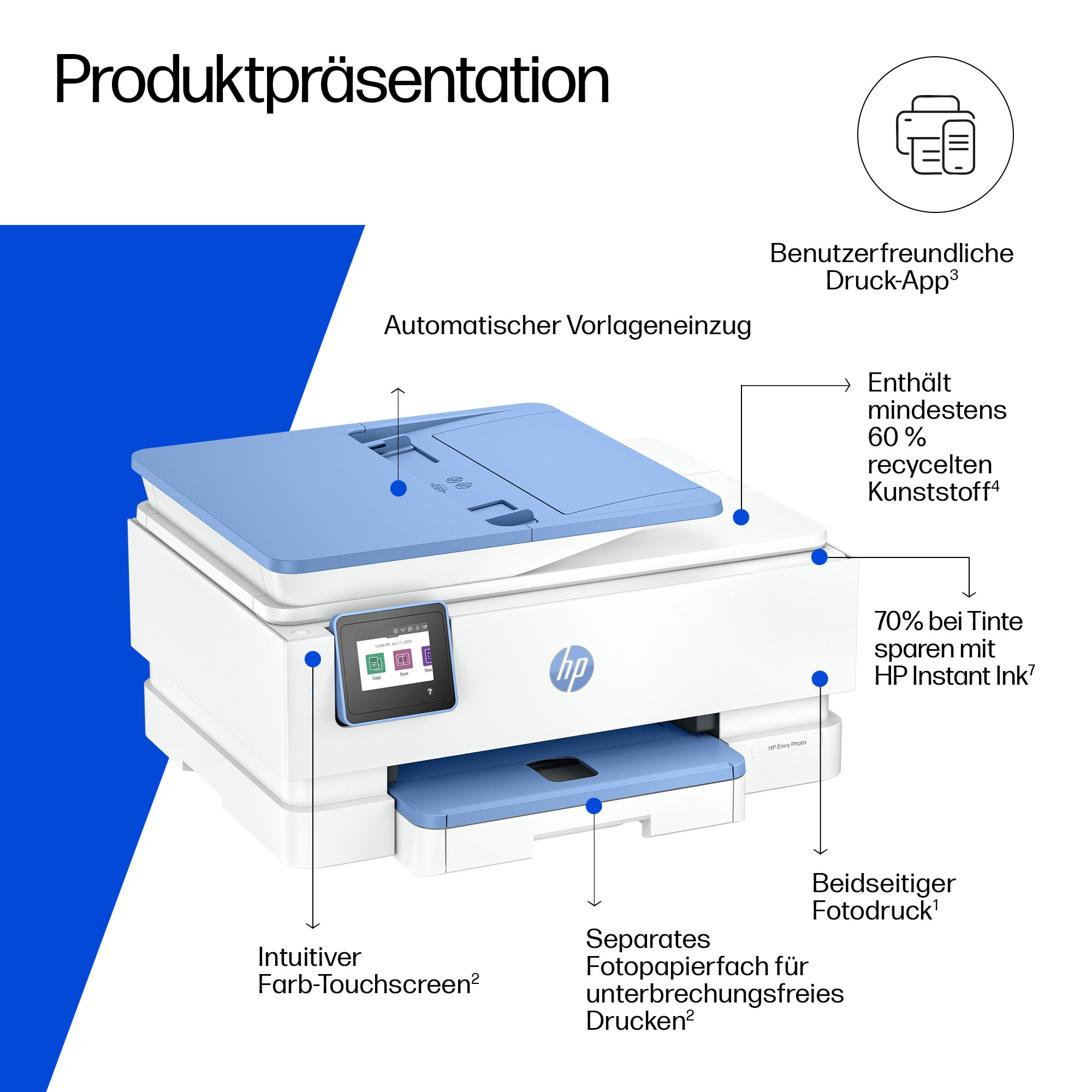 Dieser HP Envy All-in-One-Fotodrucker besteht zu mindestens 60 % aus recyceltem Kunststoff.[4]