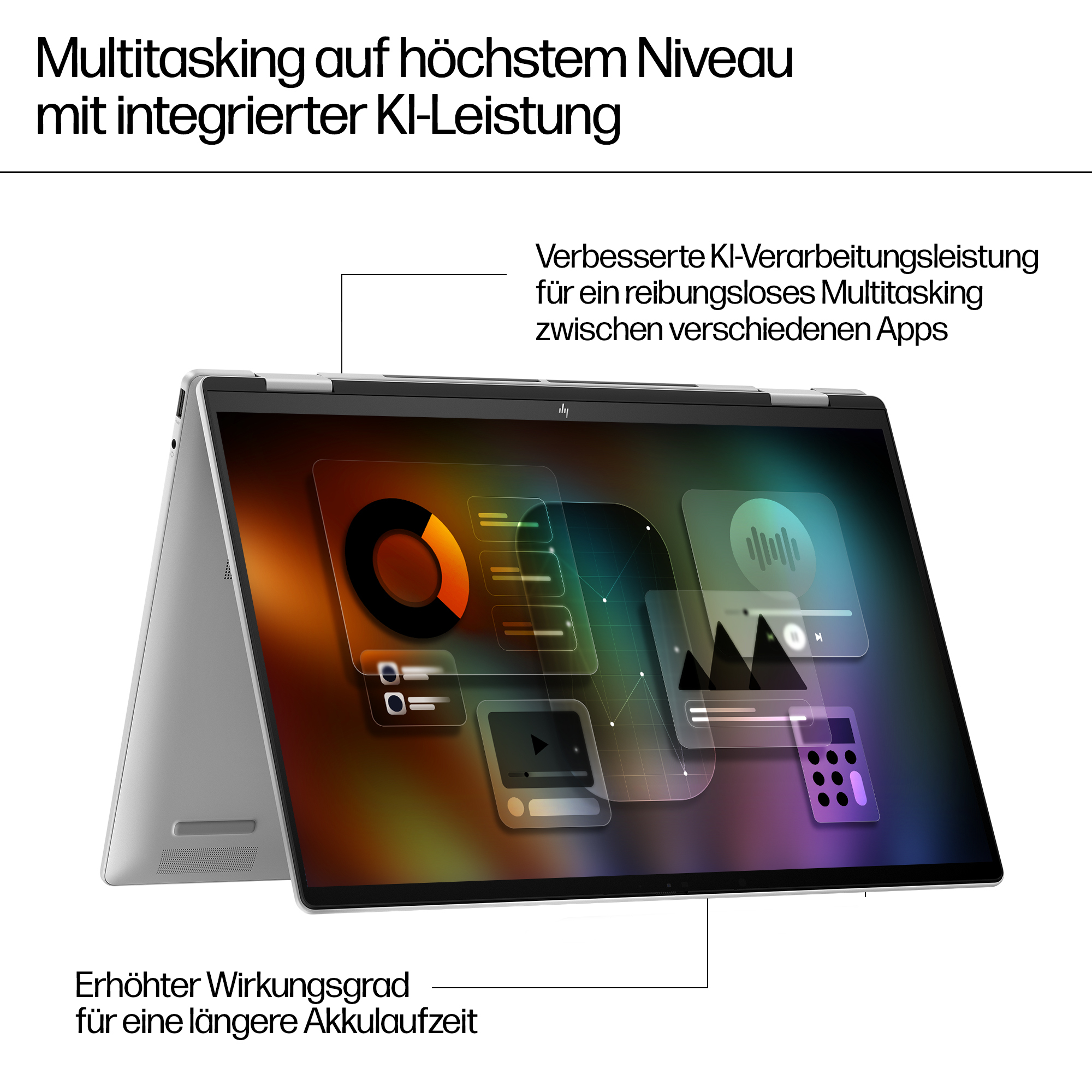 Steigere deine Produktivität mit dem HP Envy x360 16 Zoll 2-in-1-Laptop-PC. Mit einer Kombination aus KI-Technologie und dem neuesten AMD-Prozessor[1] sorgt er für eine bessere Verarbeitungsgeschwindigkeit, Effizienz und Akkulaufzeit. Dank dem 2-in-1-Modell kannst du einfach zwischen Laptop und Tablet wechseln. Dieser Laptop-PC ist aus Recyclingmaterial hergestellt und wird ohne Plastik verpackt – gut für dich und die Umwelt.