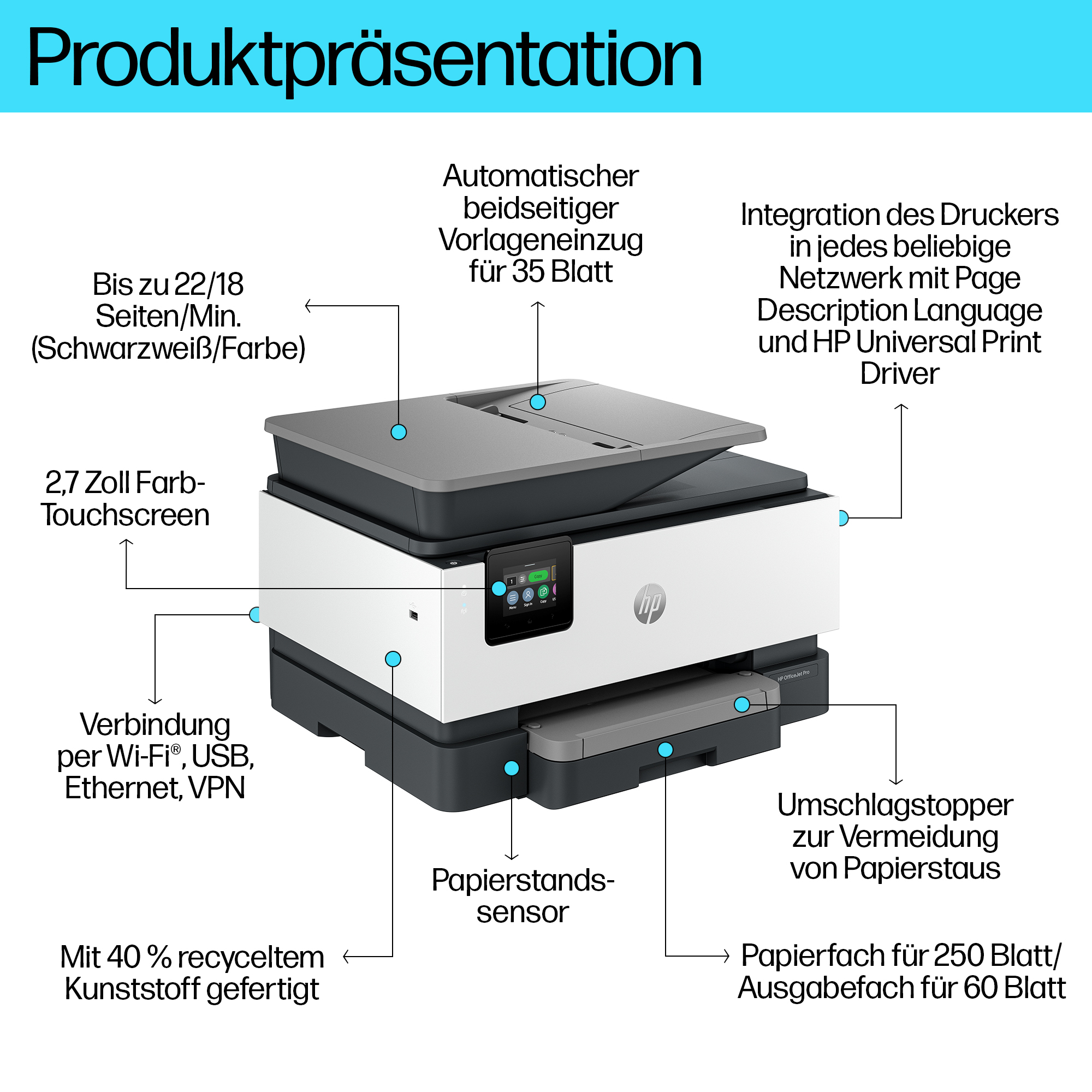 Replacement cartridges | HP 937 Schwarz Setup-Druckerpatrone (ca. 800 Seiten); HP 937 Cyan Setup-Druckerpatrone (ca. 420 Seiten); HP 937 Magenta Setup-Druckerpatrone (ca. 420 Seiten); HP 937 Gelb Setup-Druckerpatrone (ca. 420 Seiten). [Die tatsächliche Reichweite kann je nach Inhalt der gedruckten Seiten und anderen Faktoren erheblich variieren. Ausführliche Informationen finden Sie unter https://www.hp.com/go/learnaboutsupplies] |