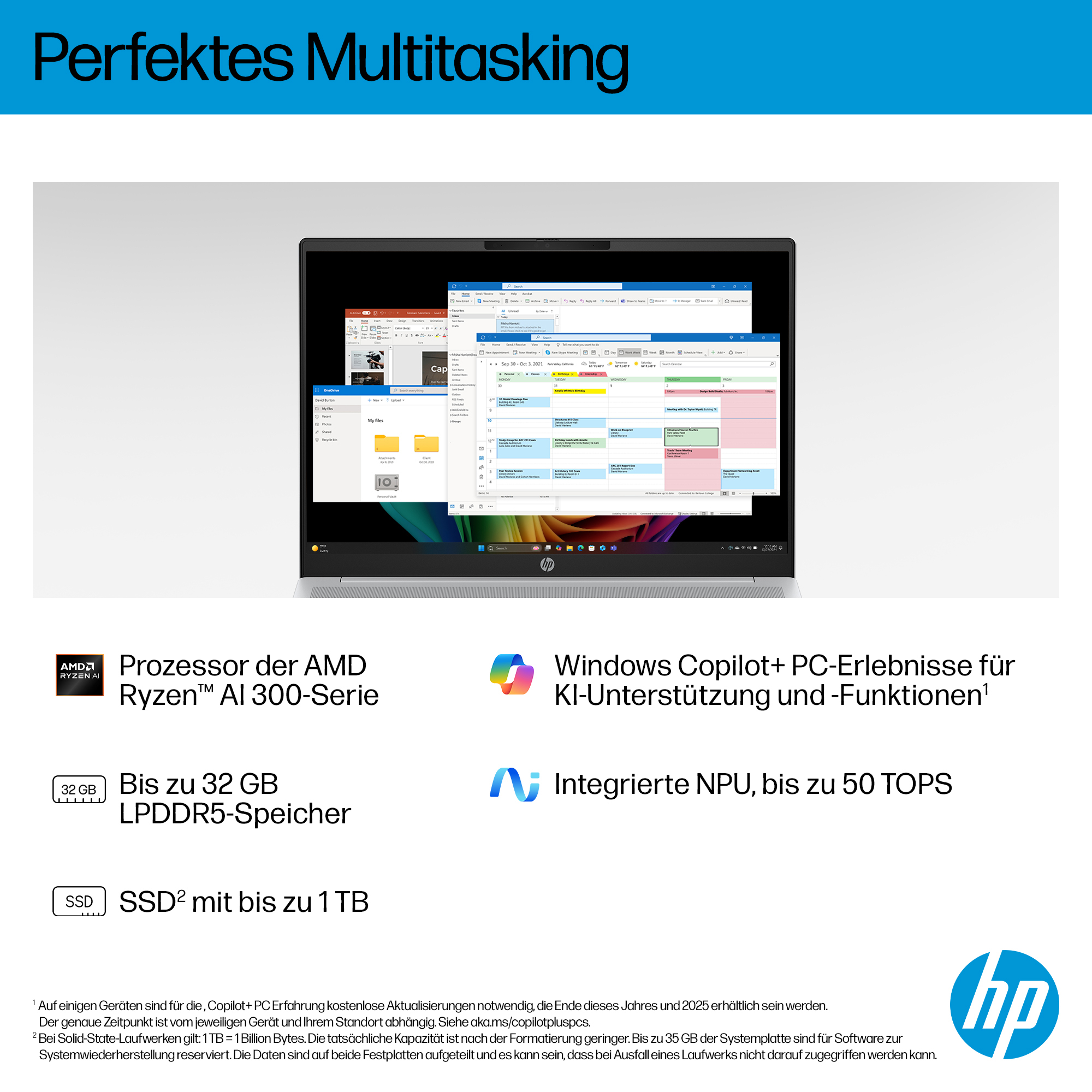 Optimiere deinen Tag mit dem HP OmniBook 5 Laptop KI-PC mit Prozessor der AMD Ryzen™ AI 300-Serie[1] und bis zu 50 TOPS für nahtloses Multitasking. Sei kreativ und innovativ auf einem atemberaubenden 2K-Display[3], lade das Gerät mit HP Fast Charge[4], verbinde dich einfach über USB-C und greife mit der Copilot-Taste[5] sofort auf KI zu.