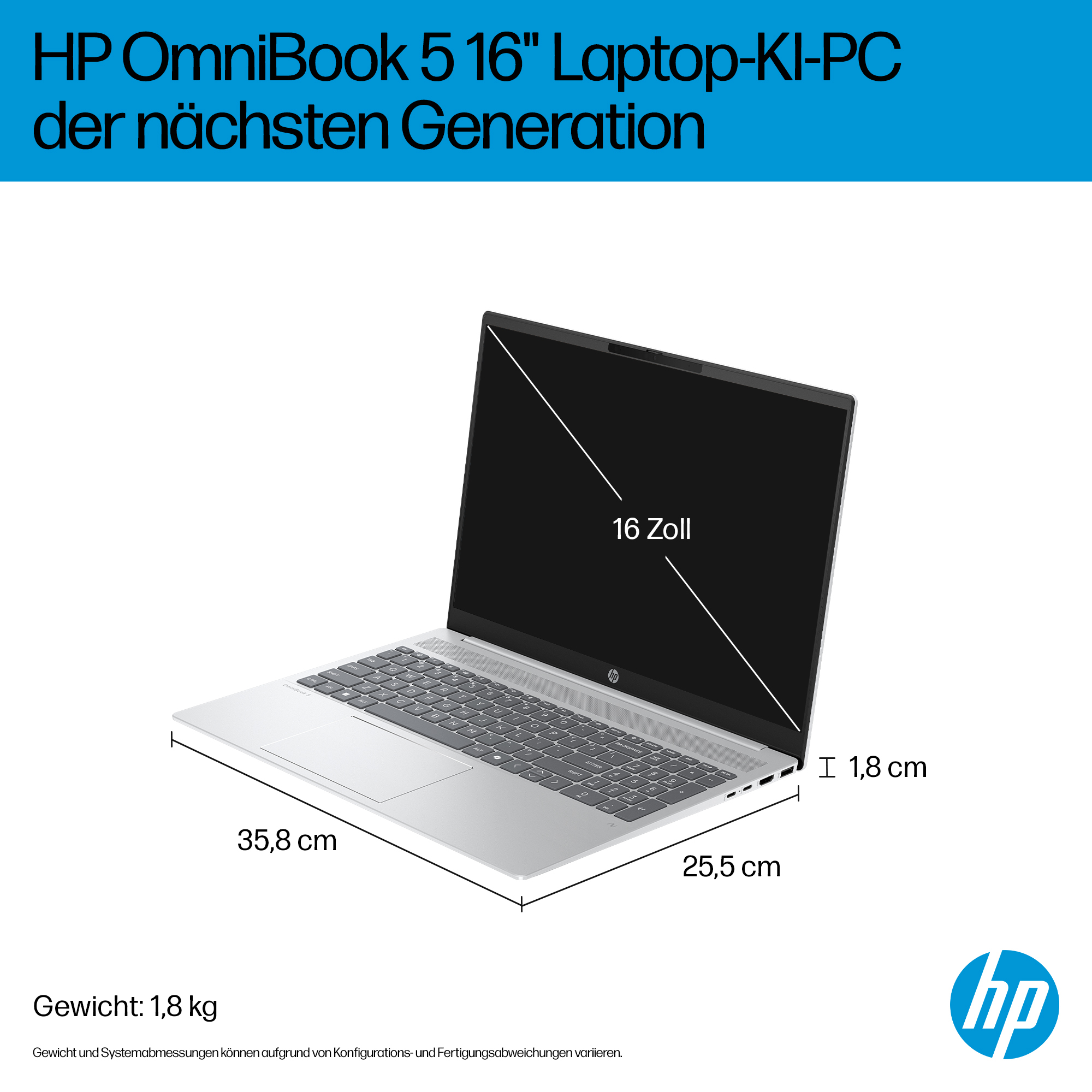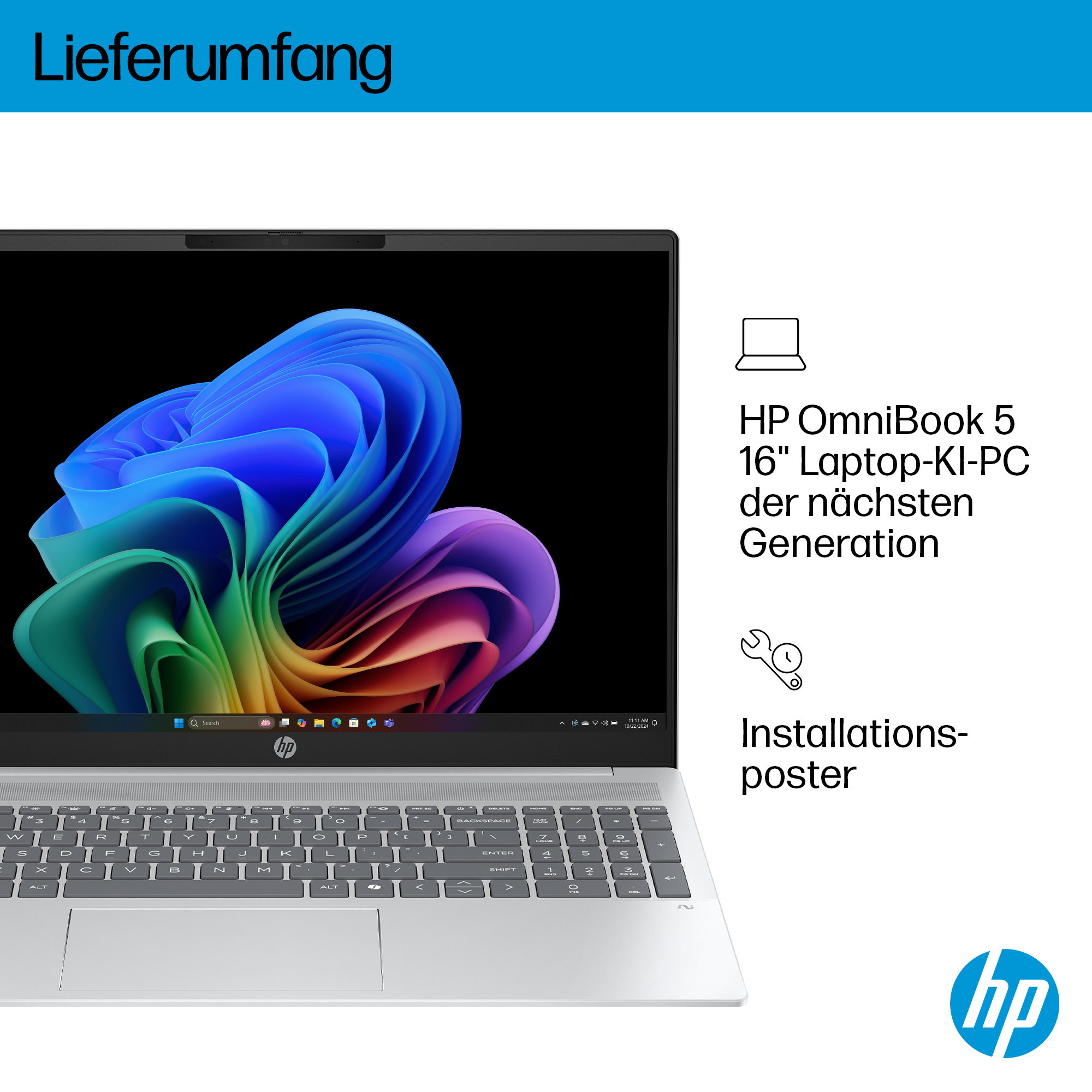 HP OmniBook 5 NGAI 16-ag1628nz Copilot+ PC AMD Ryzen AI 7 350 Laptop 40,6 cm (16") Touchscreen 2K 16 GB LPDDR5x-SDRAM 1 TB SSD Wi-Fi 6E (802.11ax) Windows 11 Home Silber
