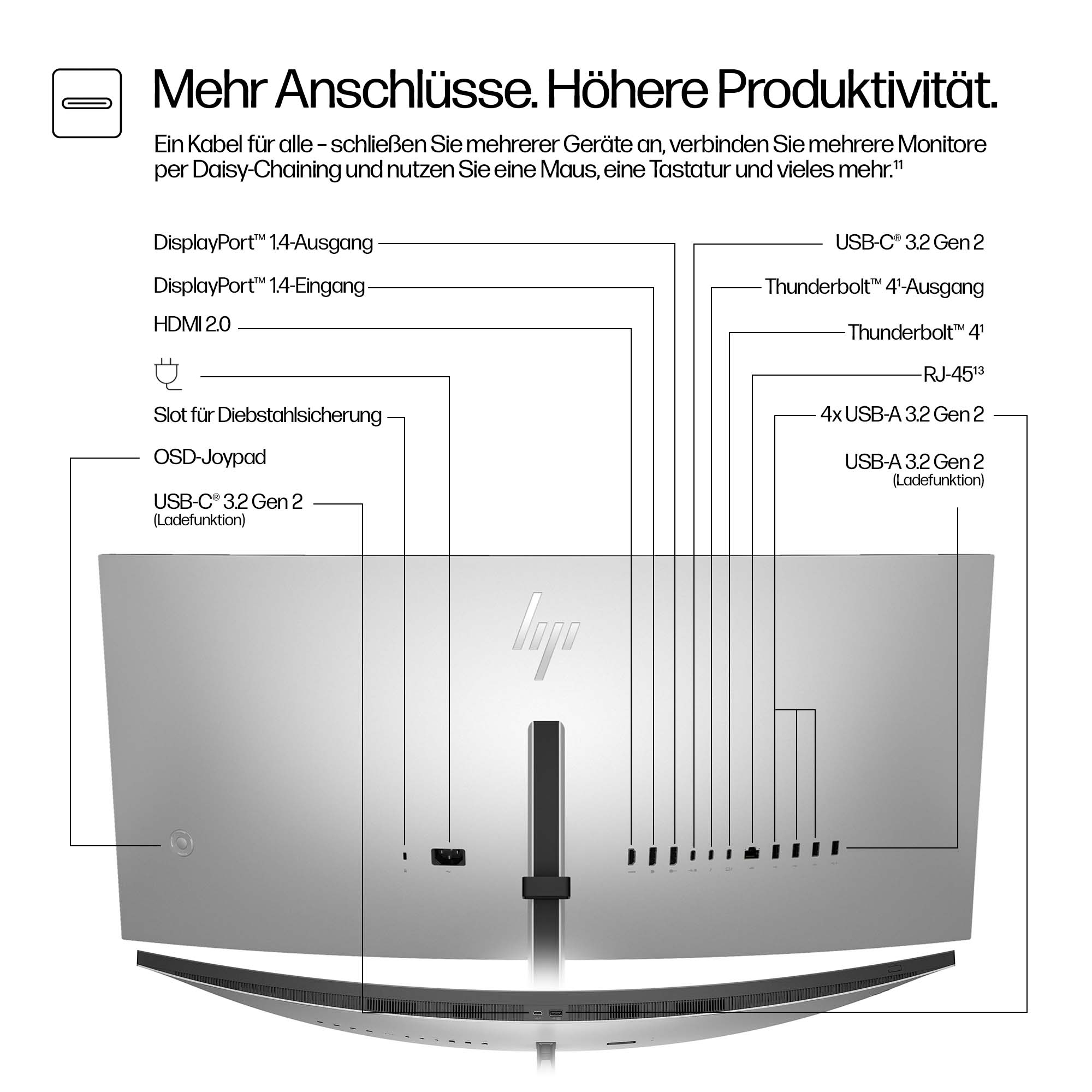 Dieser moderne gewölbte WQHD-Monitor bietet einen ultrabreiten Arbeitsbereich zur mühelosem Maximierung Ihrer Produktivität. Bewältigen Sie mehr Aufgaben ohne Unterbrechungen auf mehreren Geräten dank der unglaublichen Leistung und den modernen Workflow-Funktionen dieses Thunderbolt™ 4-Monitors.<sup>[1]</sup>