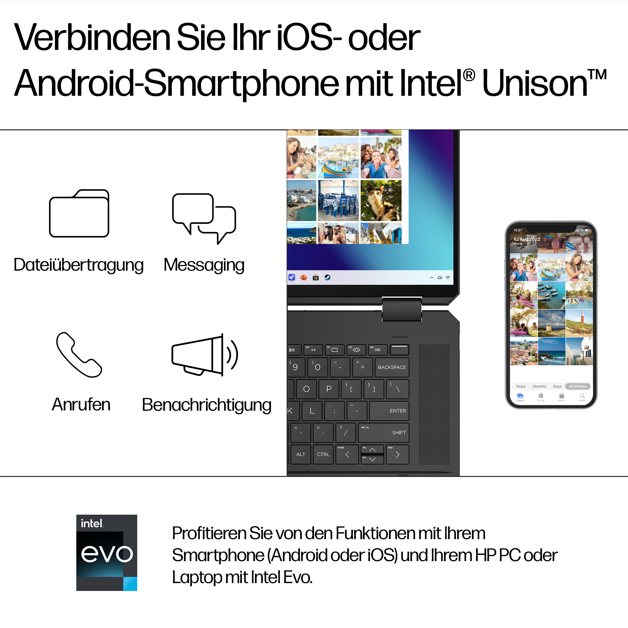 Steigere deine Produktivität mit dem HP Spectre x360 16 Zoll 2-in-1 Laptop-PC. Wechsle mühelos zwischen Laptop und Tablet und entdecke die Leistung der integrierten KI-Technologie mit dem neuesten Intel Prozessor[1] sowie fortschrittlicher Technologie für die Zusammenarbeit, die sich an deine Arbeitsweise anpasst – all dies in einem verantwortungsvoll hergestellten Laptop.