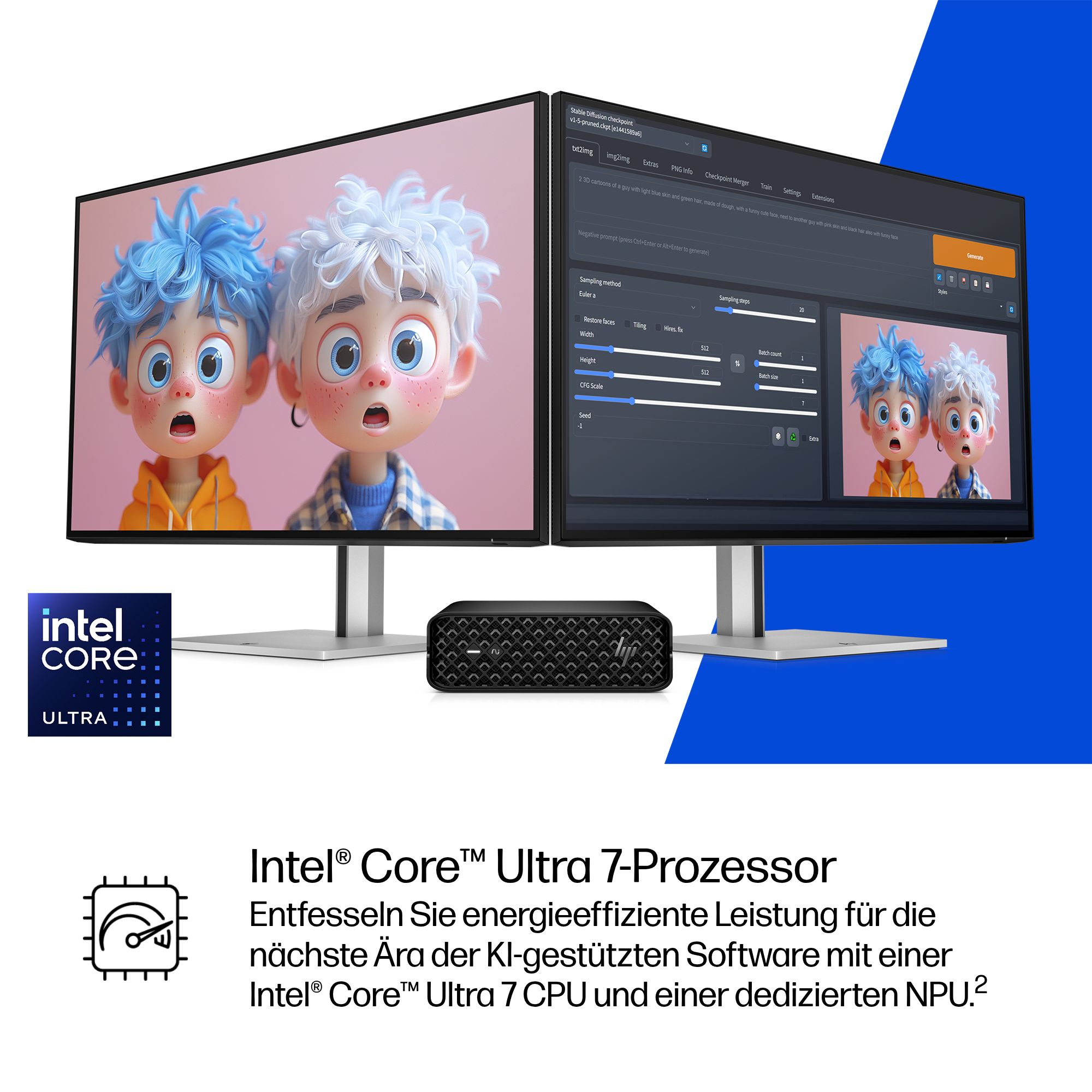 HP Z2 G1i Intel Core Ultra 7 265K 32 GB DDR5-SDRAM 1 TB SSD NVIDIA RTX A400 Windows 11 Pro Mini PC Arbeitsstation AI Workstation, AI PC Schwarz