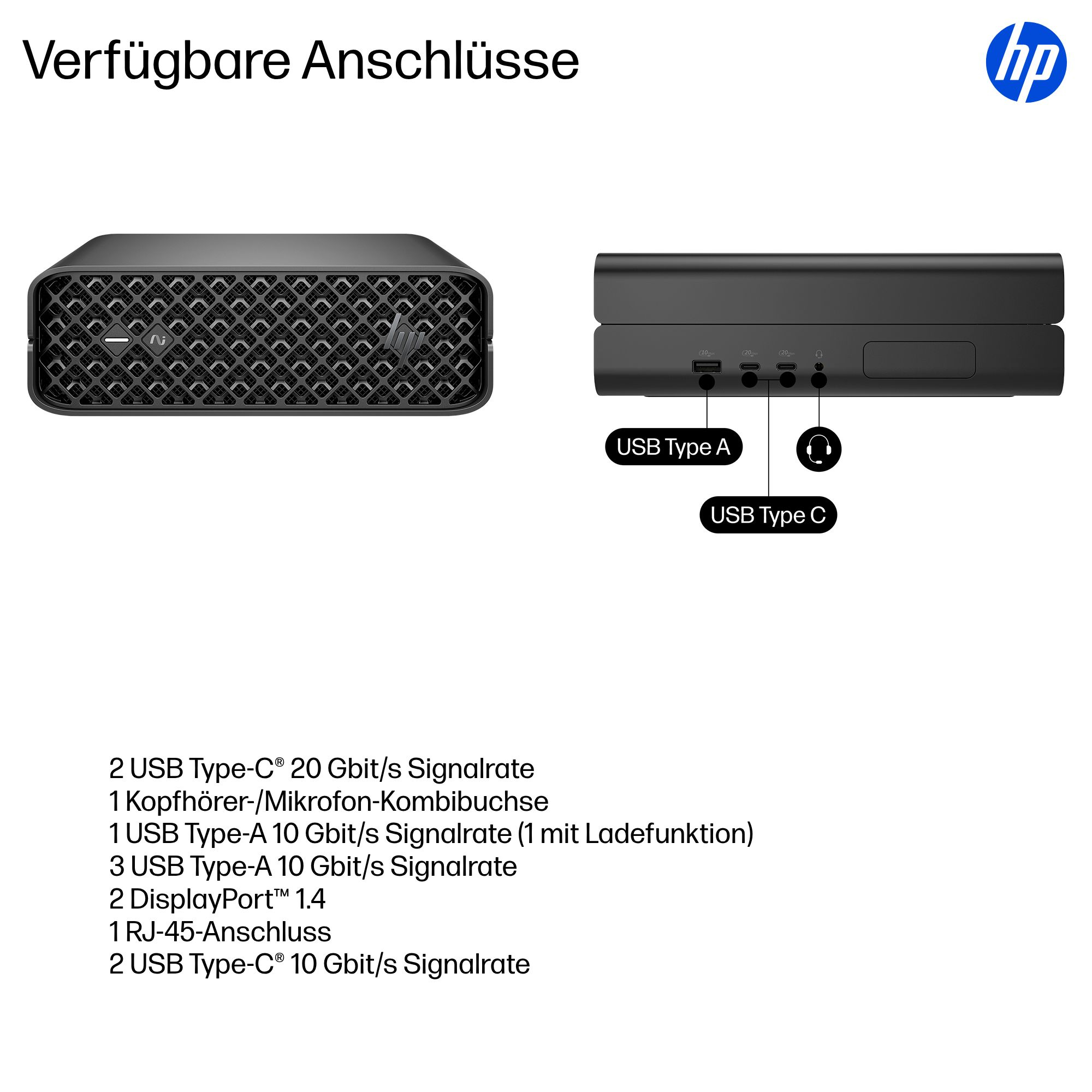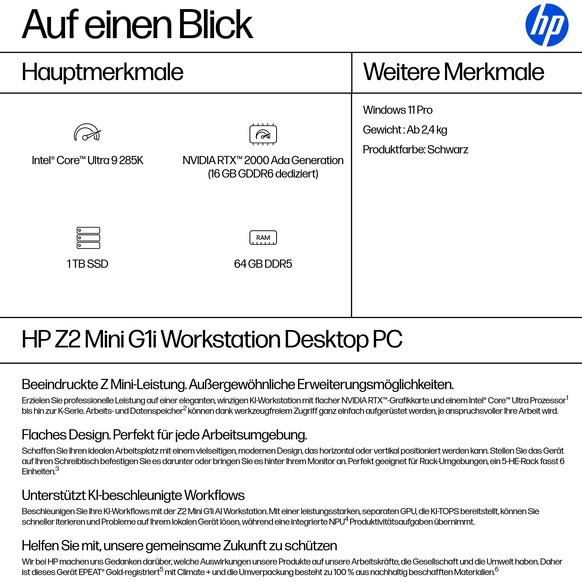 HP Z2 G1i Intel Core Ultra 9 285K 64 GB DDR5-SDRAM 1 TB SSD NVIDIA RTX 2000 Ada Windows 11 Pro Mini PC Arbeitsstation AI Workstation, AI PC Schwarz