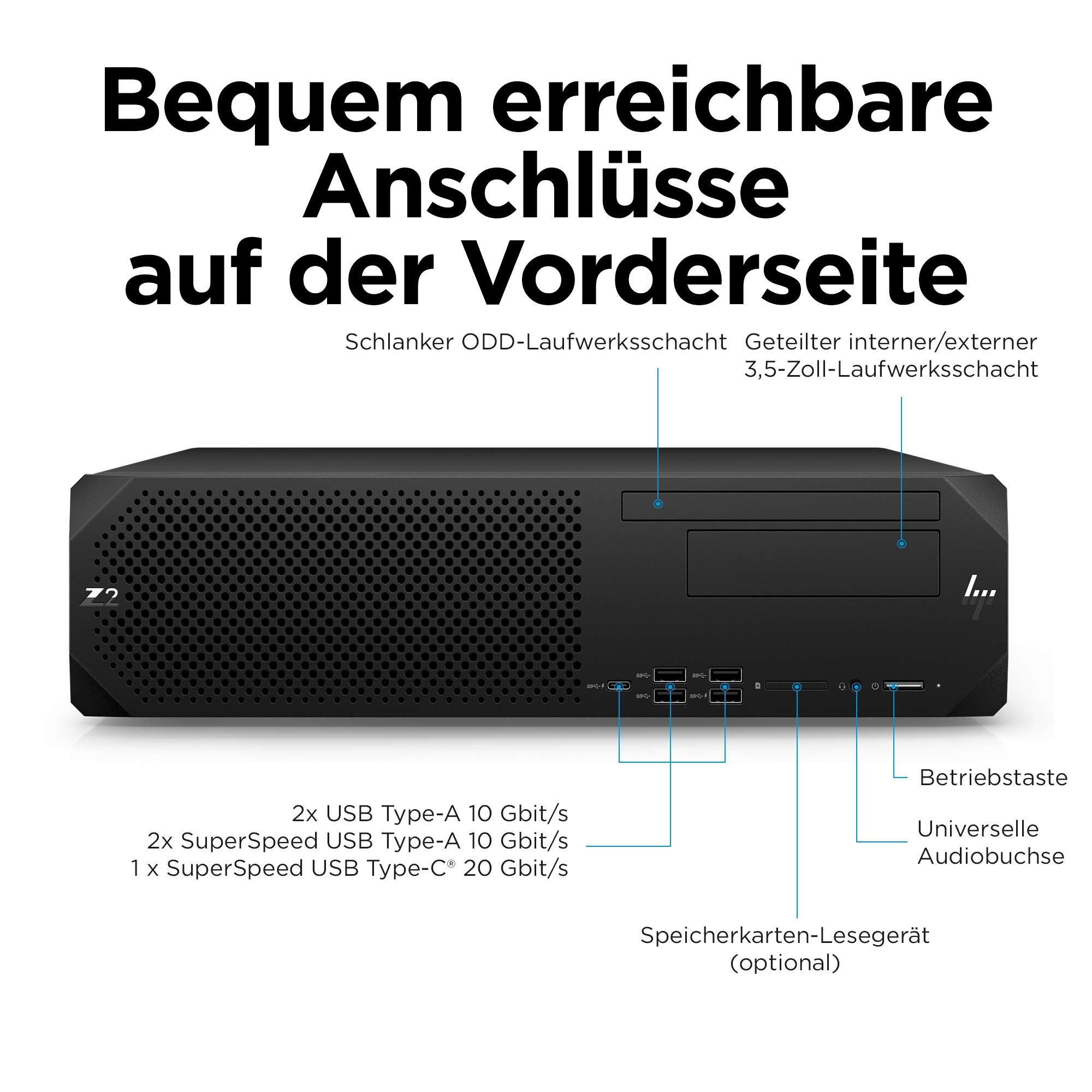 Profitieren Sie von der vollen Leistung eines Towers – in einem viel kompakteren Format. Der Z2 SFF wurde von Grund auf neu entwickelt. Er bietet Platz für Grafikkarten in voller Höhe und Länge und lässt dabei genügend Raum für Upgrades und Erweiterungen. So bietet er die nötige hohe Leistung für Ihre anspruchsvollen Workflows von 3D-Designs bis hin zu Ray-Tracing in Echtzeit – heute und in Zukunft.