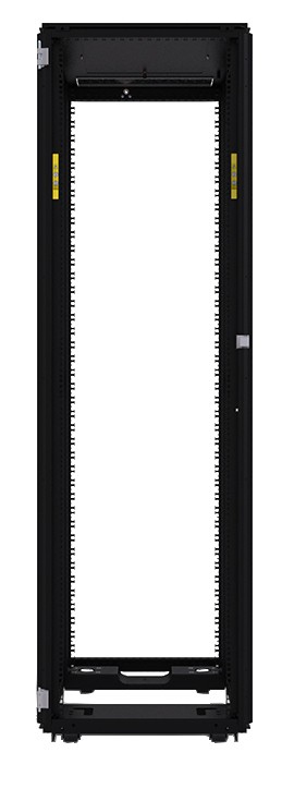 Schwere Einbauschienen stützen bis zu 1.360 kg (statische Belastung) und 1.120 kg (dynamische Belastung), wenni ein vollständig geladenes Rack im LKW und Rechenzentrum aufbewahrt wird.