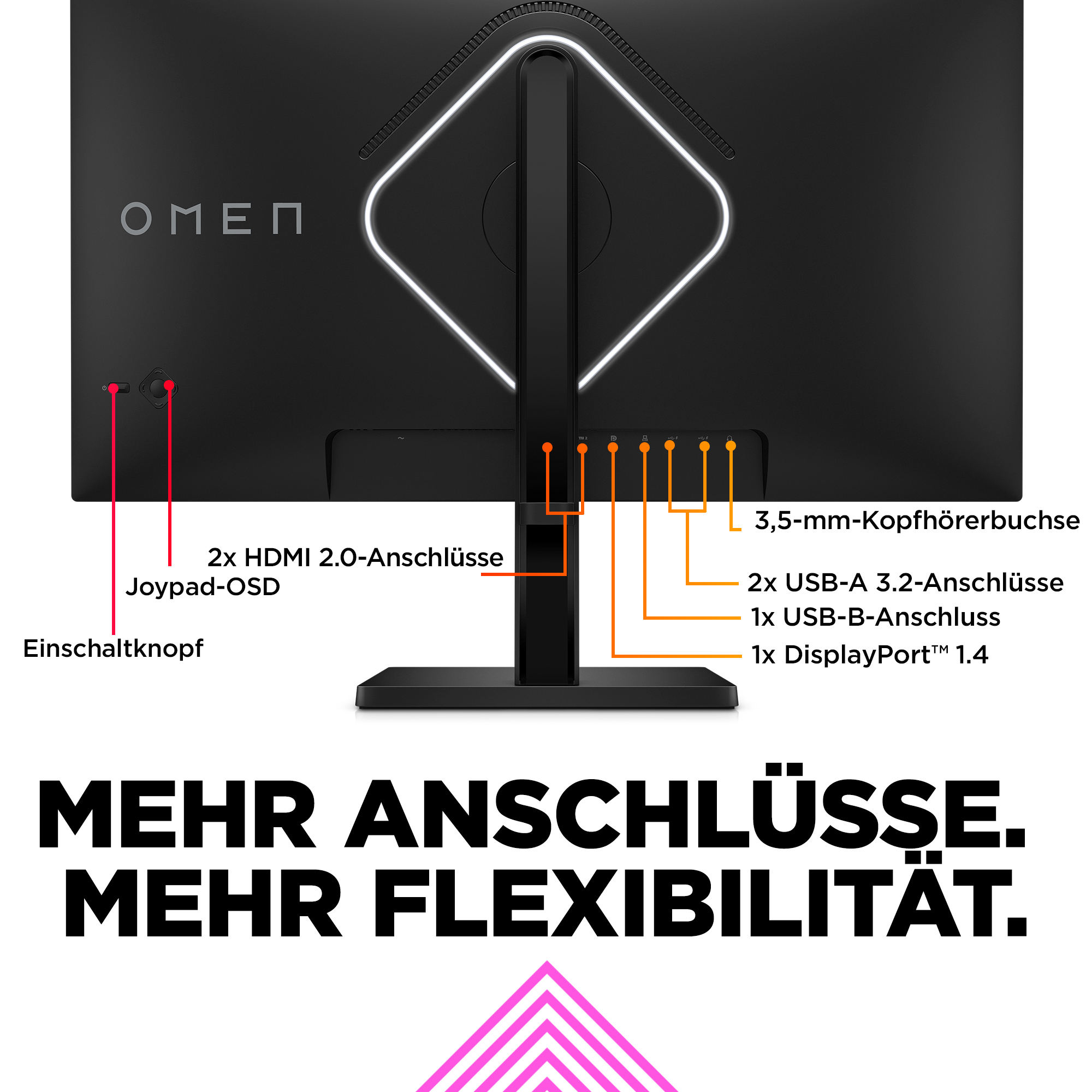 Heben Sie sich ab mit dem OMEN by HP 27 Zoll FHD-Gaming-Monitor mit einer Bildwiederholrate von 240 Hz. Mit absolut nahtlosen Einzelbildern und gestochen scharfen Details[1] bietet dieses mit NVIDIA G-SYNC kompatible Display alles, was Sie benötigen. Das stylische und raffinierte Design bietet auch außerhalb des Games ein beeindruckendes Erlebnis.