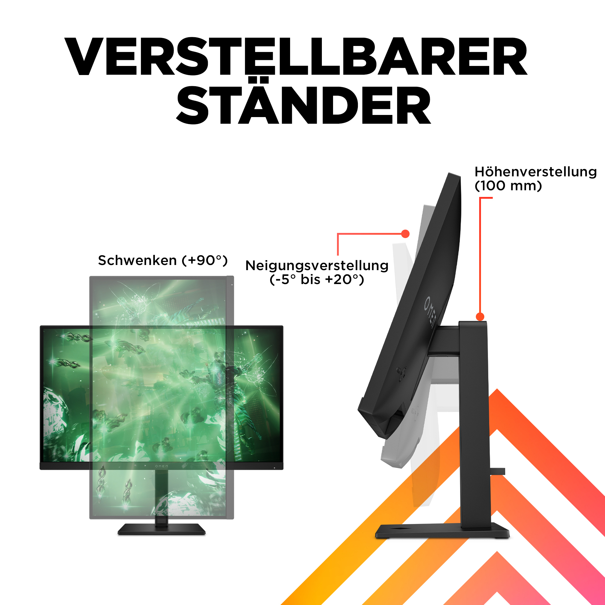 OMEN demonstriert innerhalb und außerhalb des Games, wie beeindruckend ein Gaming-Setup aussehen kann. Er ist optimal mit Anschlüssen zum Anschluss Ihres Gaming-PCs, Ihrer Spielkonsole und selbst Ihres Arbeits-PCs ausgestattet. Dank des einfachen Kabelmanagements und des verstellbaren Standfußes bleibt Ihr Schreibtisch stets aufgeräumt und organisiert.