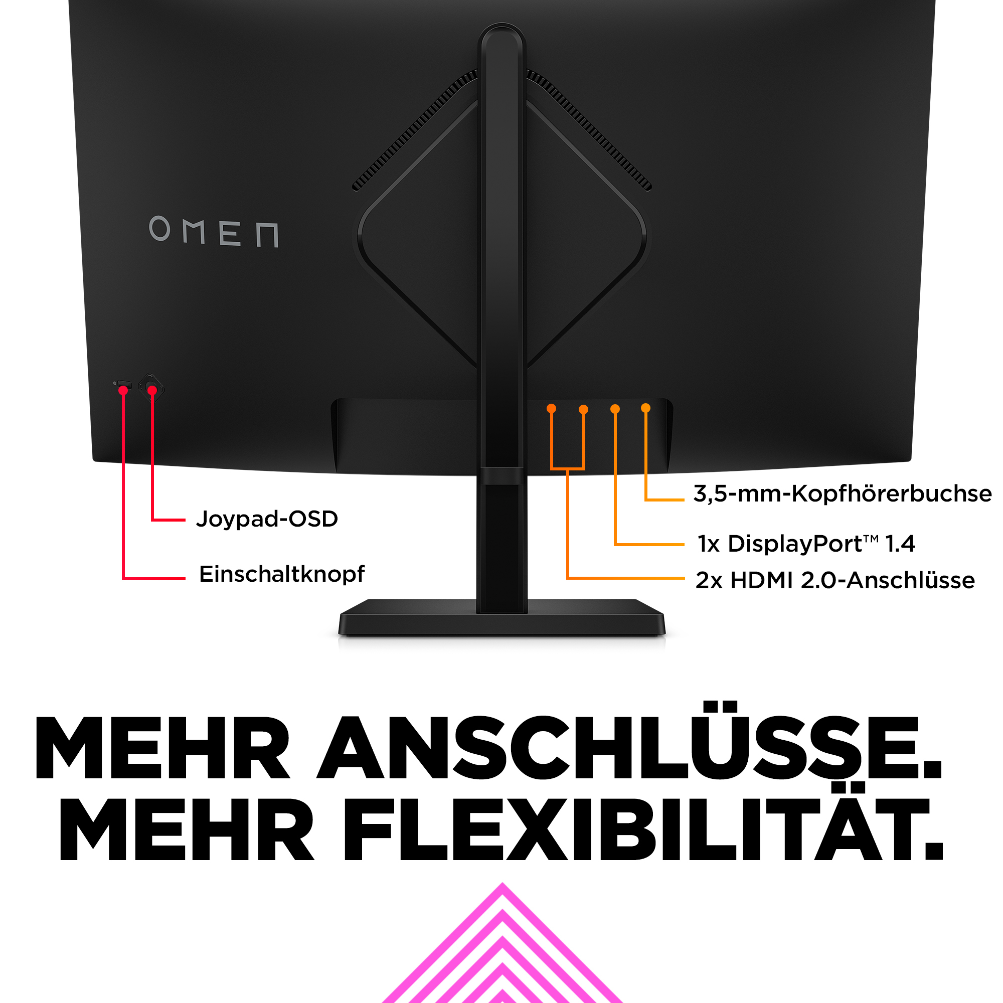 Erkunden Sie neue Möglichkeiten mit dem OMEN by HP Curved QHD-Gaming-Monitor mit einer Diagonale von 80 cm (31,5 Zoll) und einer Bildwiederholrate von 165 Hz. Dank der hohen Leistung und realistischen Farben verlieren Sie sich in Ihren Lieblingsgames, während das schlanke Design diesen Monitor zu einem wahren Blickfang auf Ihrem Schreibtisch macht.